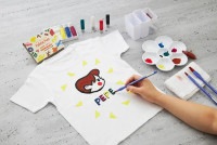 布に絵や文字を描いて染めることができ、アイロンいらずで使える布用のえのぐです。