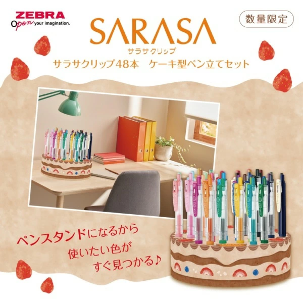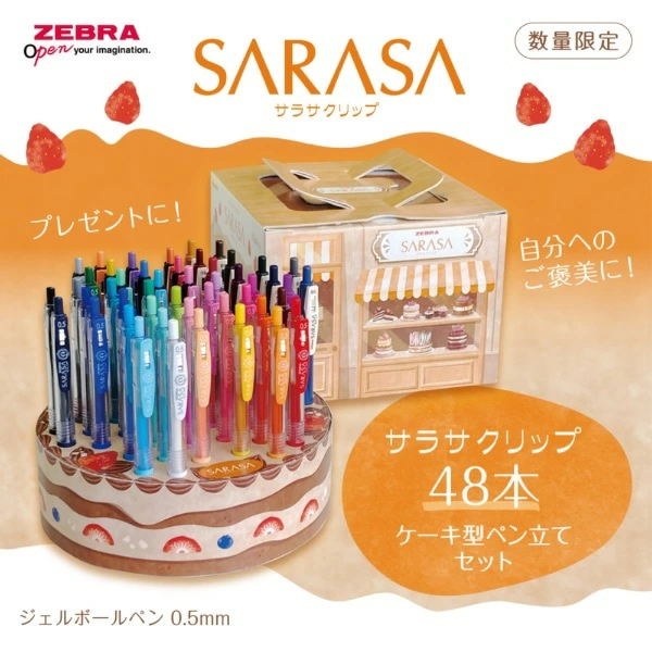 ゼブラ サラサクリップ ケーキ型ペン立てセット ボールペン 48色セット JJ15-48-CAKE