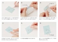 メモ面下部のフィルム部分を折る→ふせんのりで机上に貼りつけることで、メモ面がしっかり自立。