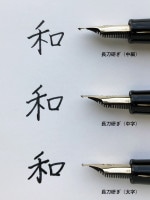 トメ、ハネ、ハライなどが多い漢字を最も美しく筆記するために、ペンを寝かせると太い線が書け、立てると細い線が書けるという特長があります。